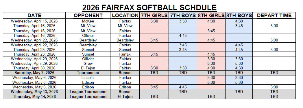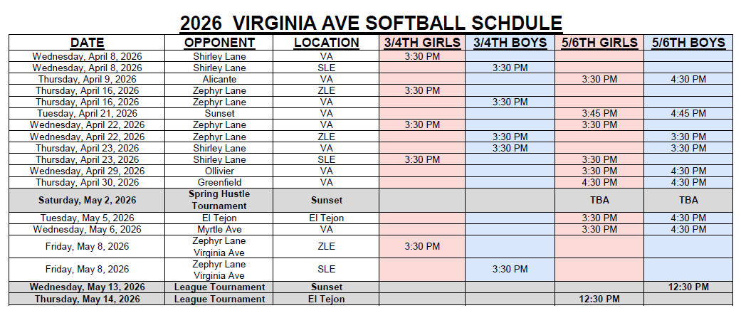 As always, schedules are subject to change due to factors such as weather, facility availability, or adjustments from opposing schools. We will communicate any updates as soon as possible.